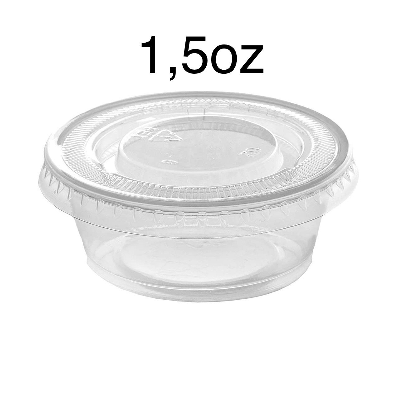 Pocillo 1,5 oz con tapa de polipropileno, ideal para salsas, soya y aderezos.